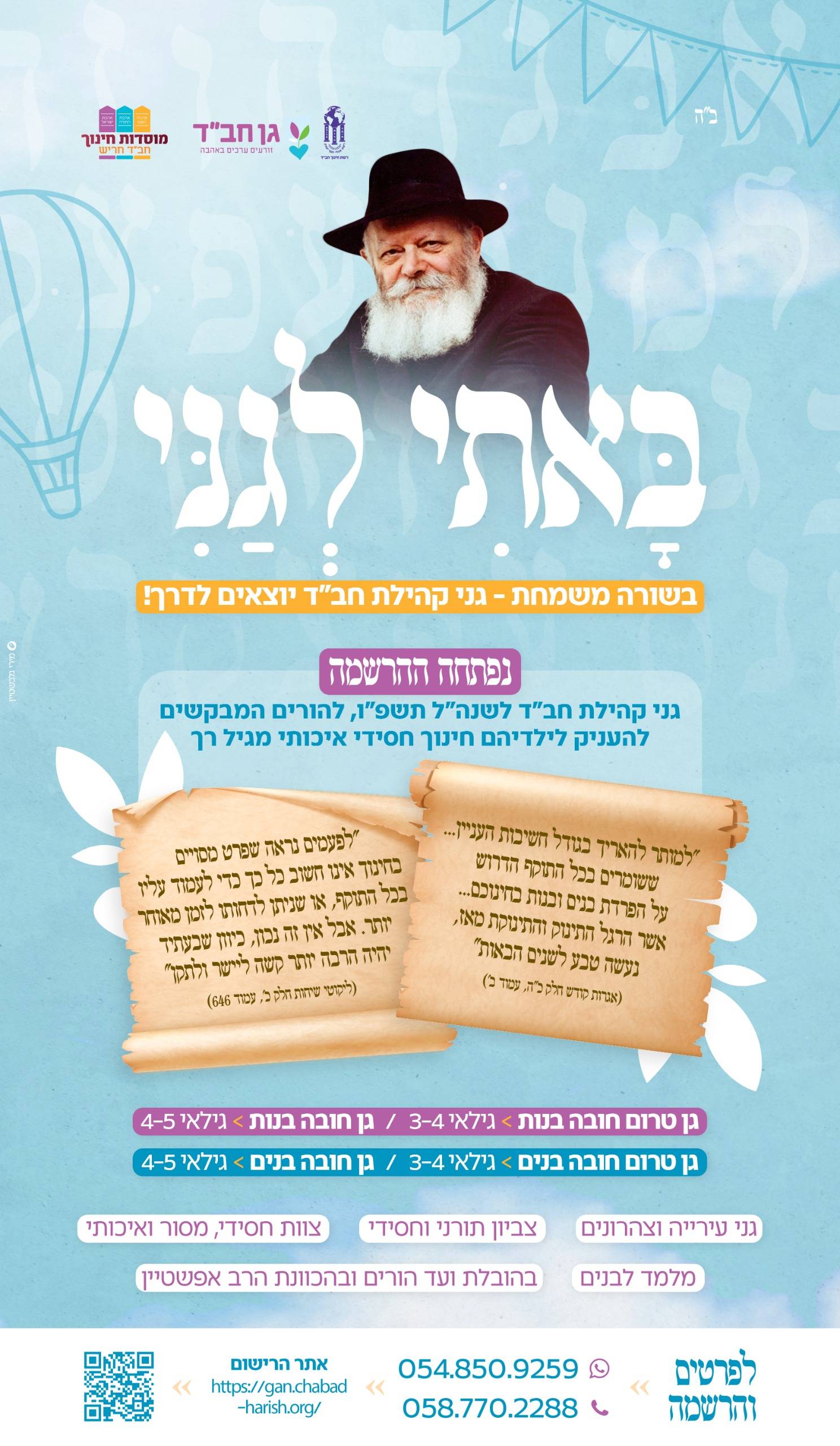 לקראת שנה"ל תשפ"ו, אנו שמחים לבשר על פתיחת גני קהילת חב"ד בחריש.